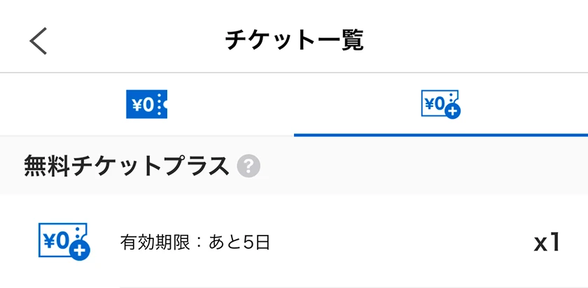 所持しているチケットプラスの枚数や有効期限はマイメニュー>チケット一覧から確認できます。